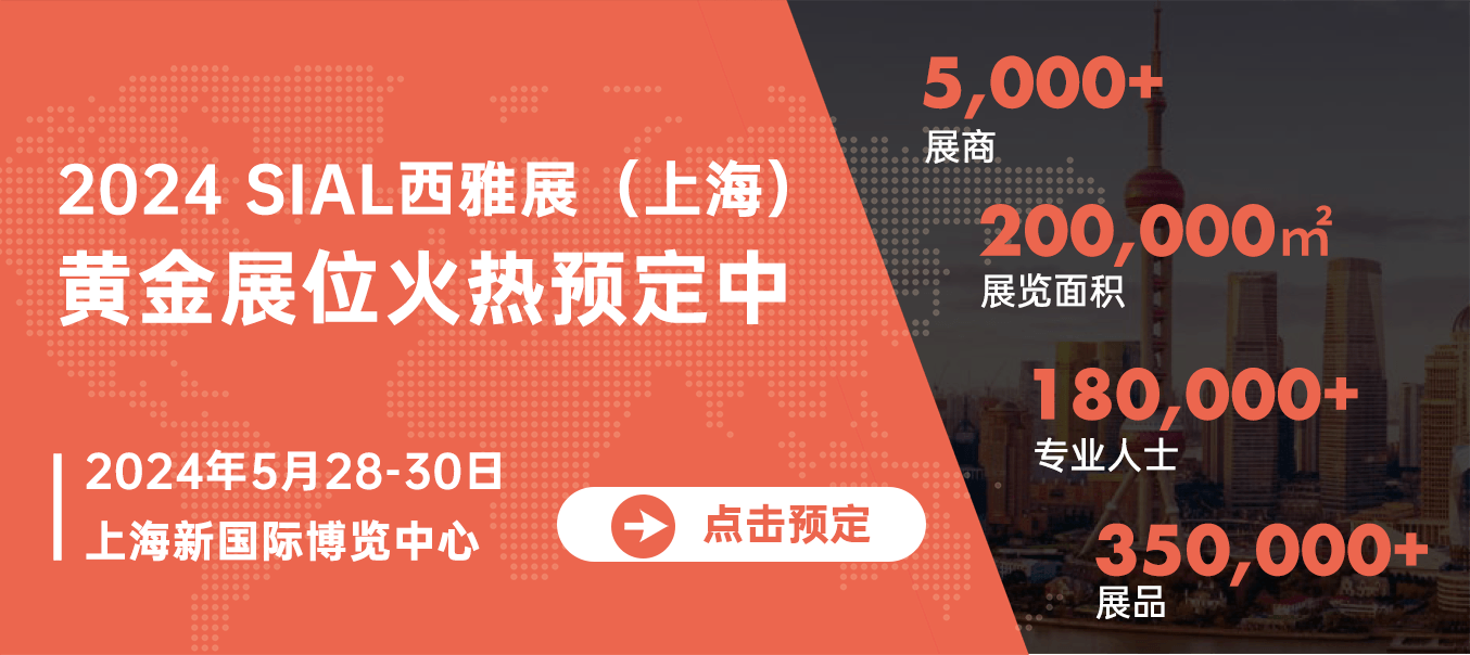 作為SIAL世界三大食品展之一的SIAL西雅展(上海)2024再啟食飲商貿(mào)征程,在200,000平方米的展覽面積上,預(yù)計吸引100+國家和地區(qū)的5,000+展商攜350,000+展品亮相,超過180,000專業(yè)人士參與觀展。同期還將舉辦SIAL西雅國際餐飲供應(yīng)鏈展、SIAL世界食品產(chǎn)業(yè)峰會和賽事及活動。