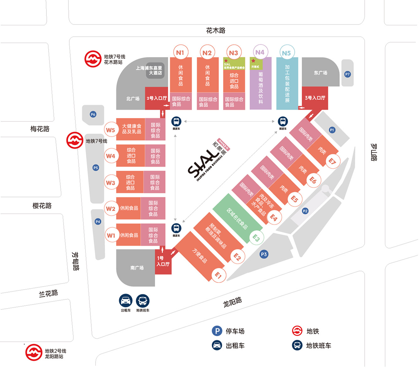 | 地鐵7號(hào)線:花木路站下車(近展館北大廳) 地鐵2號(hào)線:龍陽路站下車(近展館南大廳) 浦東機(jī)場搭乘磁懸浮列車:龍陽路站下車 | |||