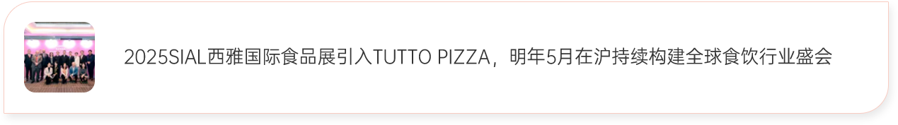 2025 SIAL西雅展(上海)將引進(jìn)Tuttopizza。Tuttopizza首次亮相亞洲,是SIAL西雅展(上海)國際化道路上的又一里程碑事件。