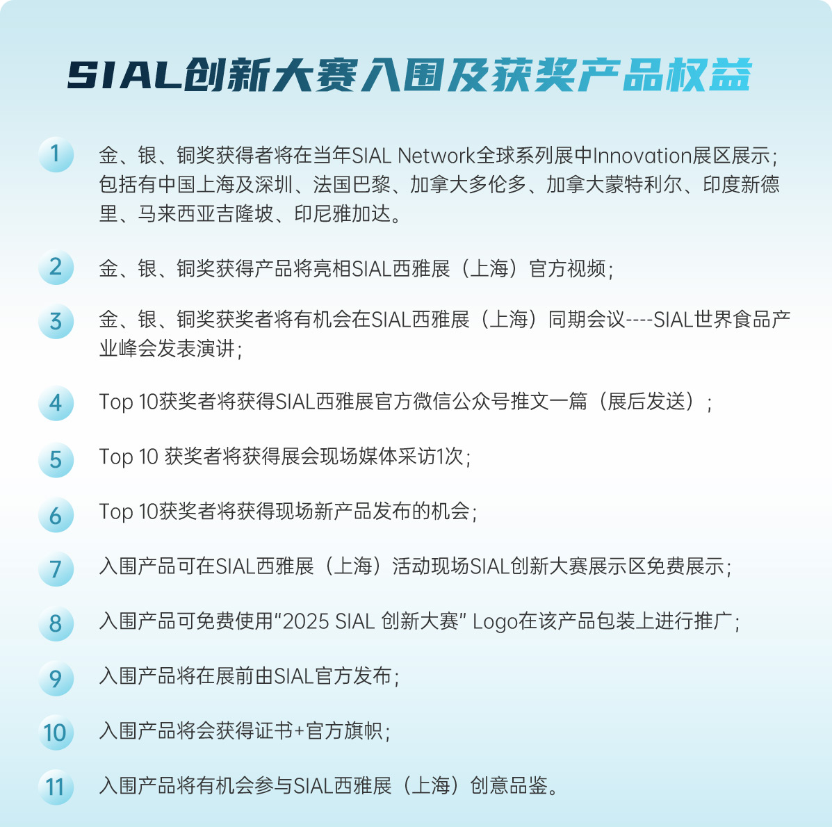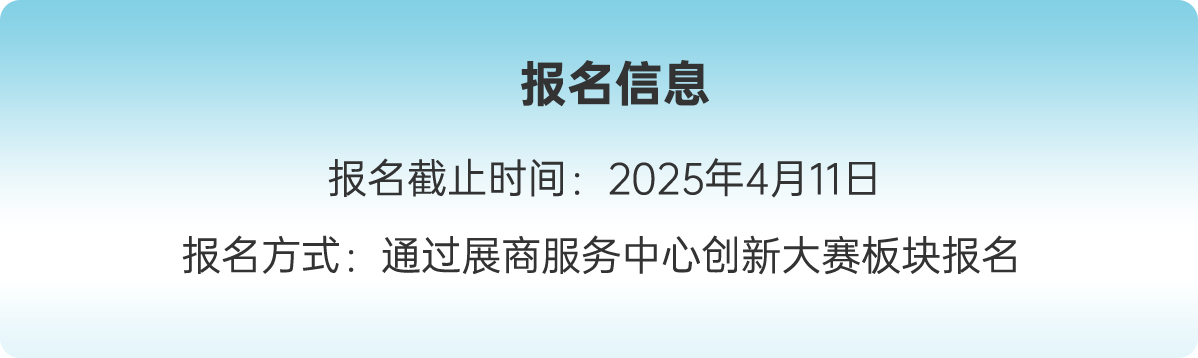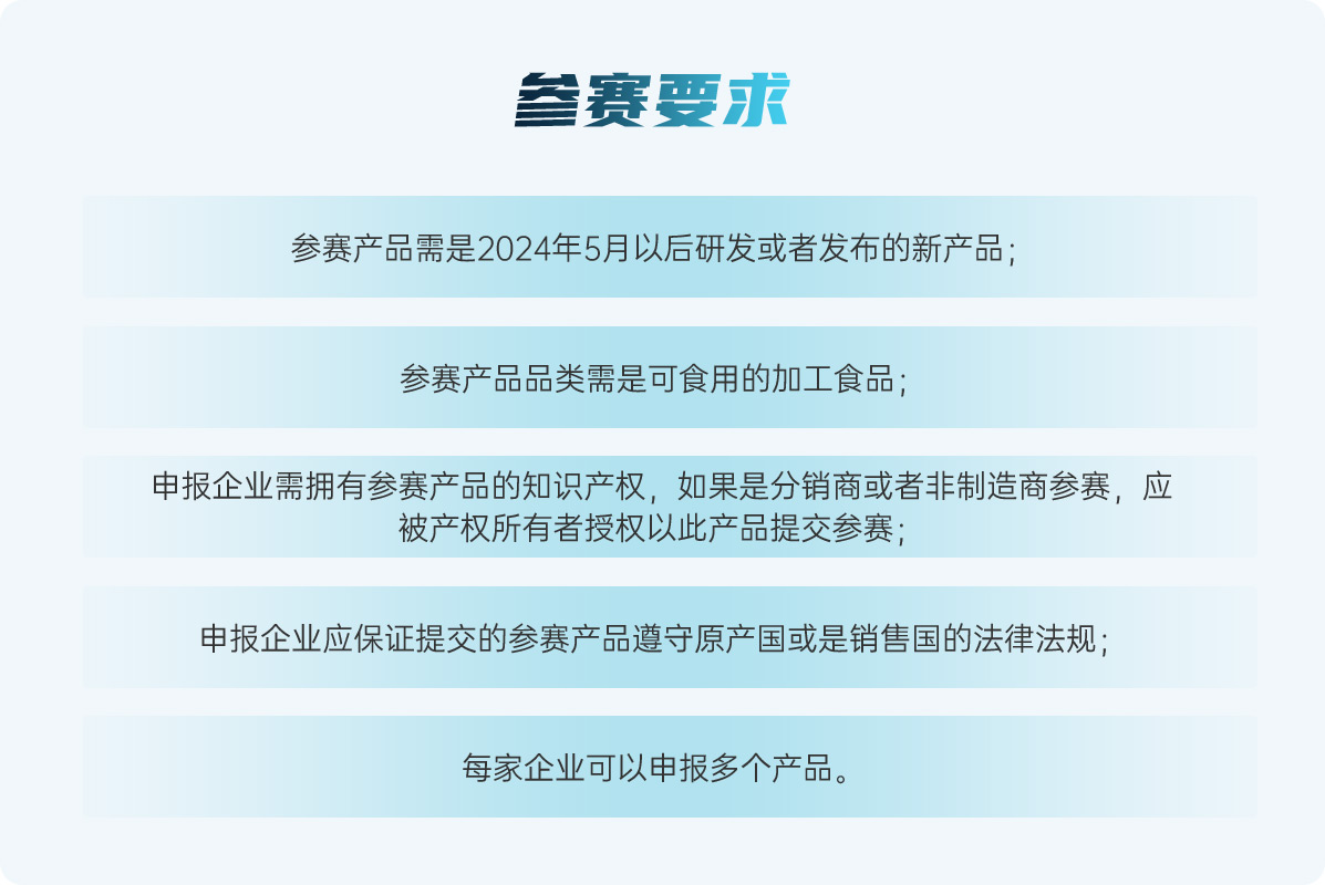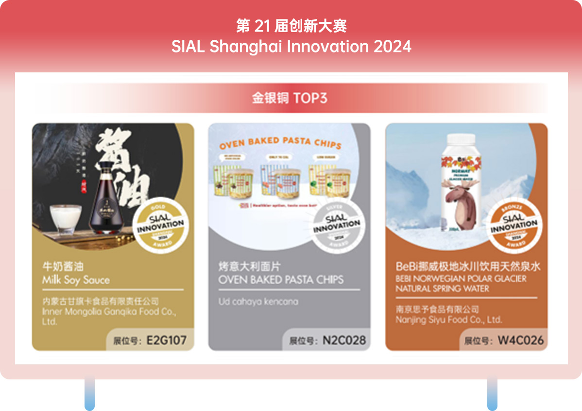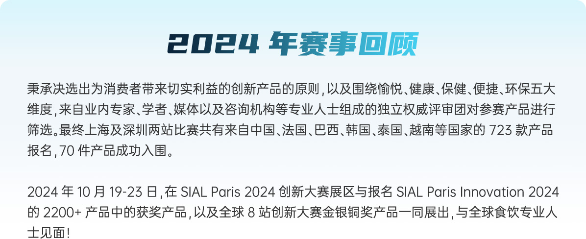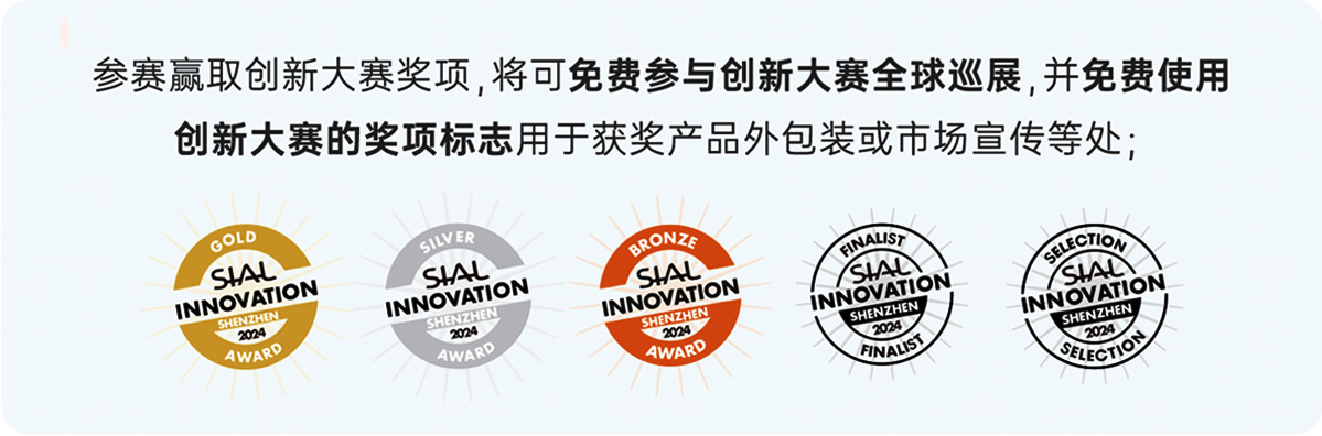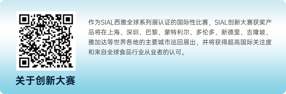 “第二十三屆 SIAL Innovation創新大賽”正式開賽,所有已經確認參加2025年SIAL西雅展(上海)展商(獨立展商及展團)均可通過登錄“展商中心”---參與創新大賽報名,報名申請將于2025年4月11日截止。