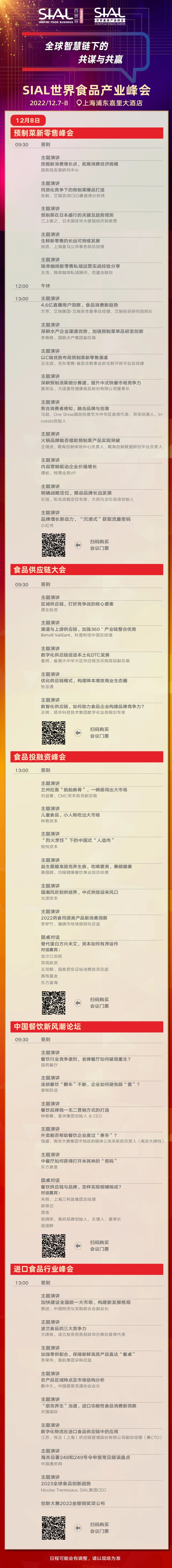 SIAL世界食品產業峰會將于2022年12月7日-8日如期舉辦!峰會將以“全球智慧鏈下的共謀與共贏“為主題舉辦包含預制菜、新零售、供應鏈、農業食品科技、食品投融資、營養健康食品、植物性食品、乳業、肉類、飲品、中餐、進口食品在內的多場主題論壇。
